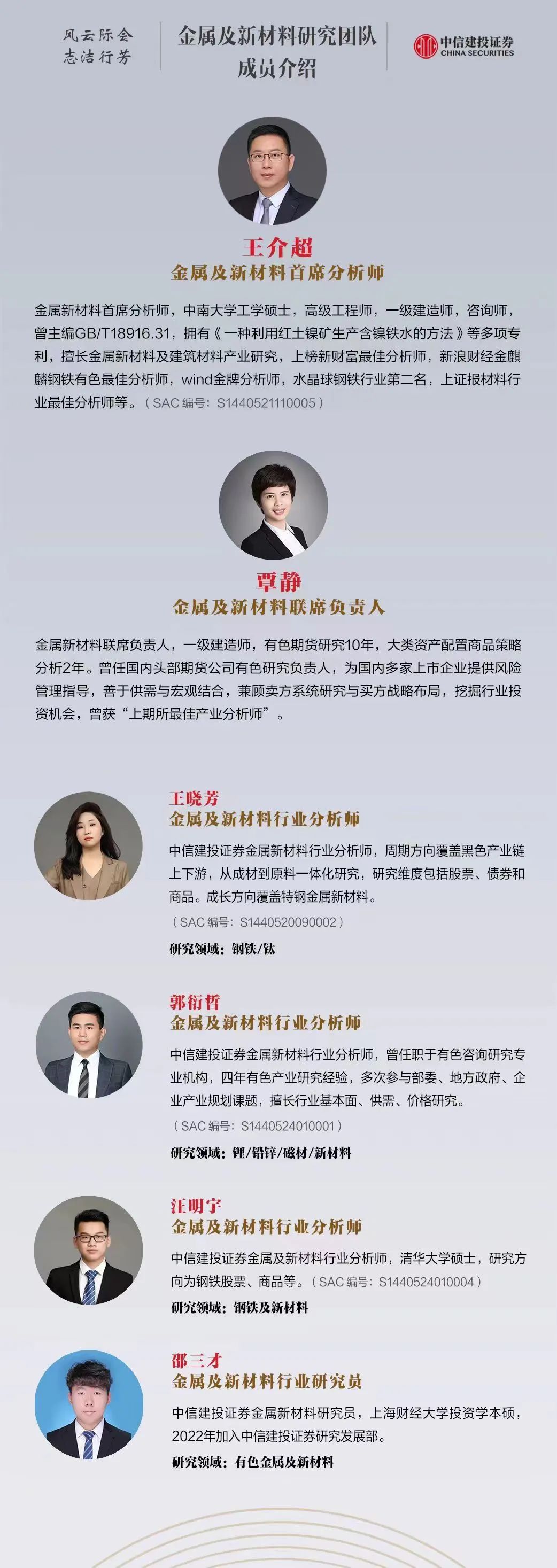 本订阅号(微信号:CSC研究金属和金属新材料团队)为中信建投证券股份有限公司(下称“中信建投”)研究发展部中信建投研究金属和金属新材料研究团队运营的唯一订阅号。本订阅号所载内容仅面向符合《证券期货投资者适当性管理办法》规定的机构类专业投资者。中信建投不因任何关注本订阅号或接收、阅读本订阅号内容的行为而将订阅人视为中信建投的客户。